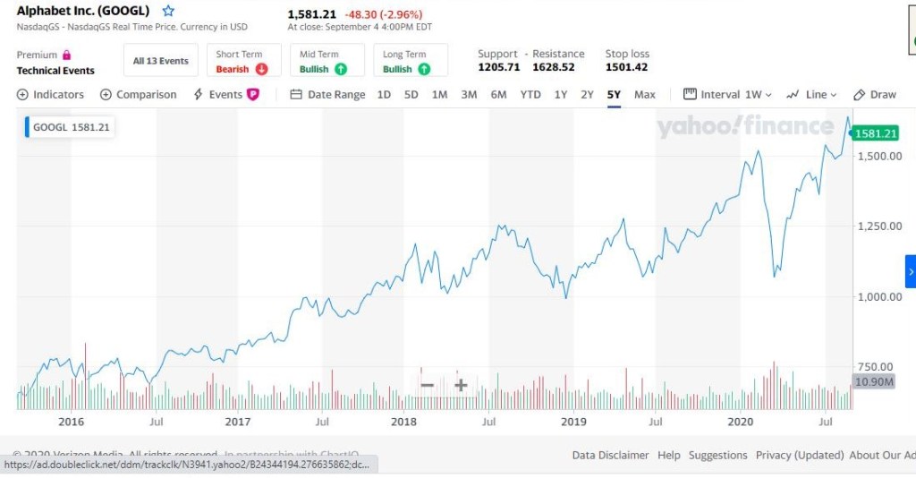 Option 2: You buy Google stock. Looking at the prices chart below.