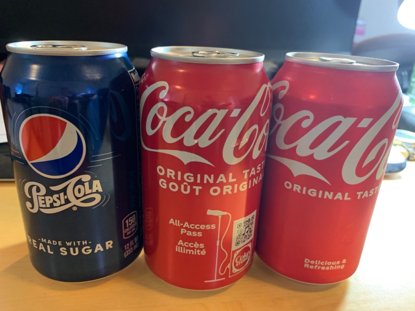 2. In the USA Wal Mart carries Pepsi with real sugar. Check the label. The can looks different. It is however hard to find. See pic. While some might prefer Coke versus Pepsi, sugar Pepsi tastes better than corny high fructose Coke. Try it side by side and you will see.